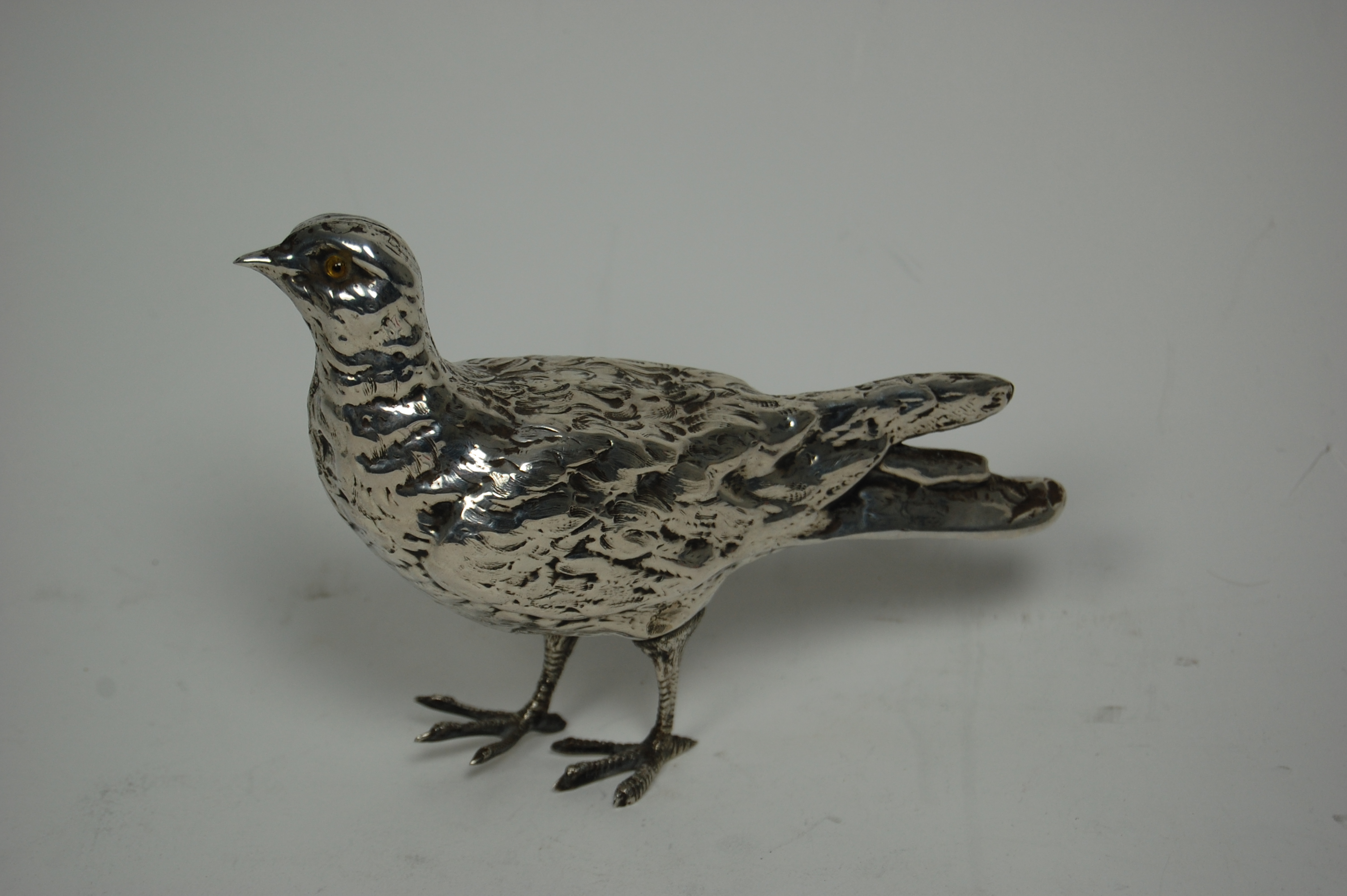 indistinctly marked to foot, naturalistically formed and set with yellow and black glass eyes