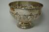 by H Atkins Sheffield 1905, the deep bowl with embossed scroll spiralled fluting and with panels of foliate and flower heads between, resting on a waisted stem and spreading foot