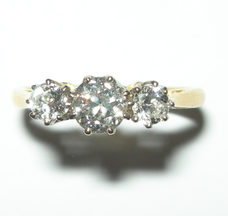 An 18ct gold mounted three-stone diamond ring,
