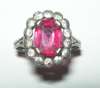 the central corner claw set oval cut ruby within a surround of millegrain collet set old European cut diamonds