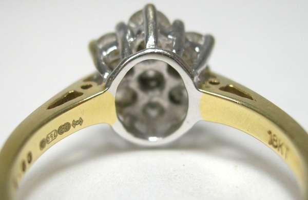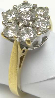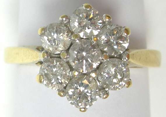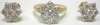 comprising a ring and a pair of matching earrings, each designed as a floral cluster set with round brilliant cut diamonds