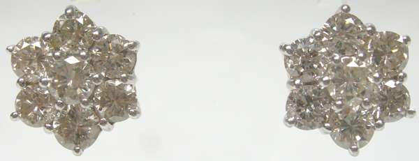 Height of ring to front: 1.1cm, diameter of earrings 1.1cm, estimated diamond weight approximately 3.00cts total