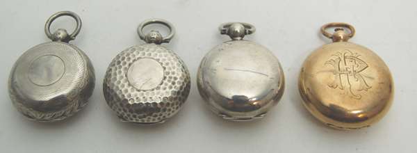 of traditional form with engraved monogram and push button opening; together with three silver examples, one with hammered finish (4)