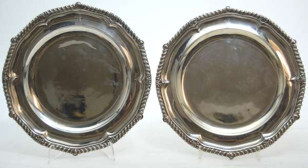 Paul Storr, London 1818, of shaped circular form with gadrooned border, with engraved crest of dragons head facing left above a crown (2)