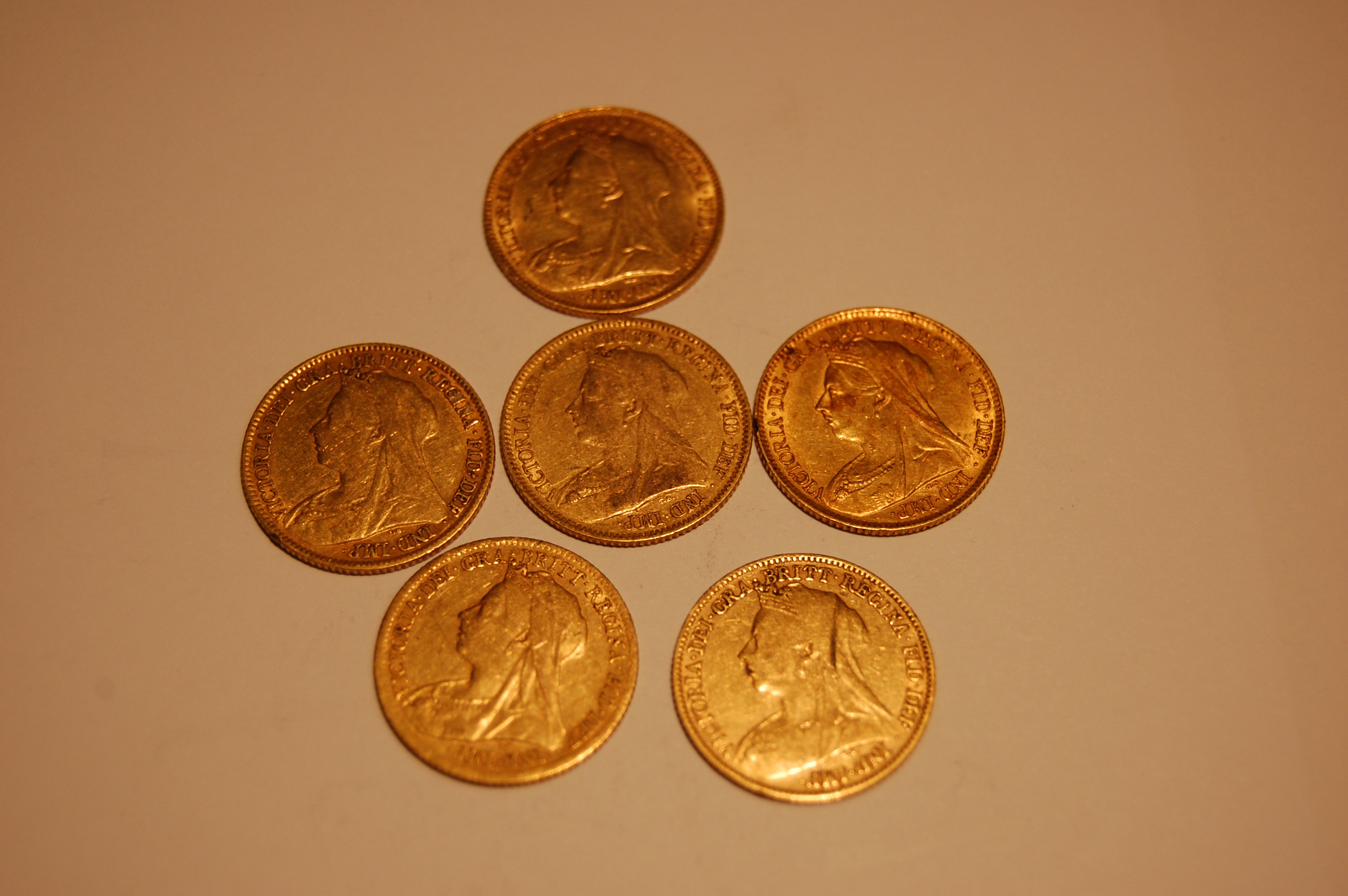 A group of old head Victorian half sovereigns