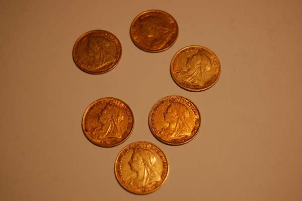 A group of old head Victorian half sovereigns