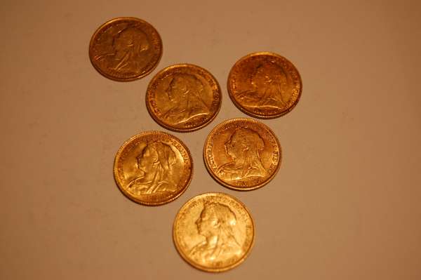 A group of old head Victorian half sovereigns