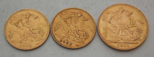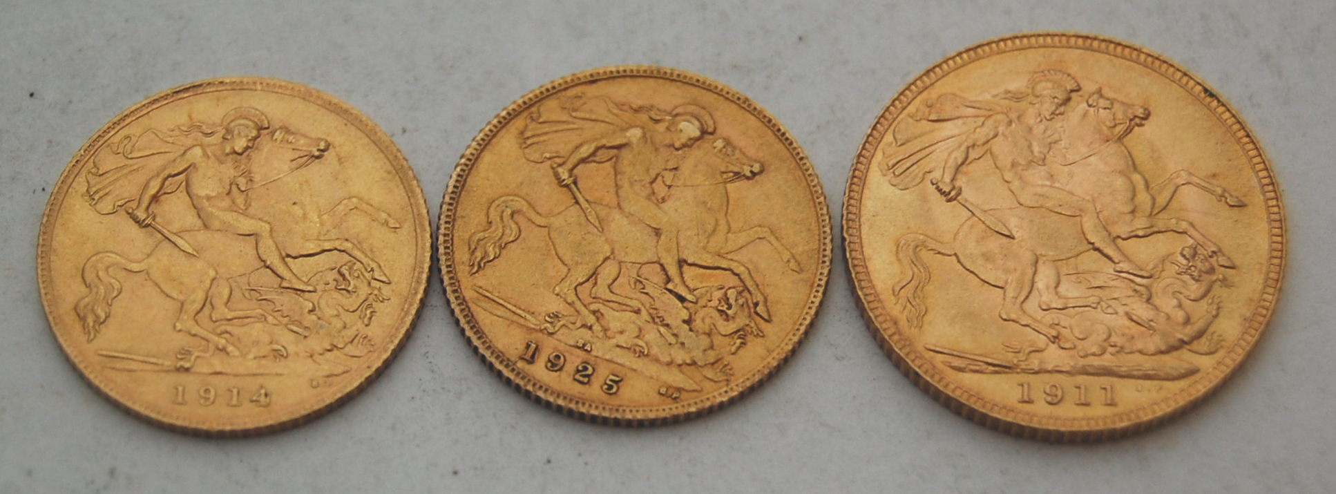 1911; and George V half sovereigns dated 1914 and 1925 (3)
