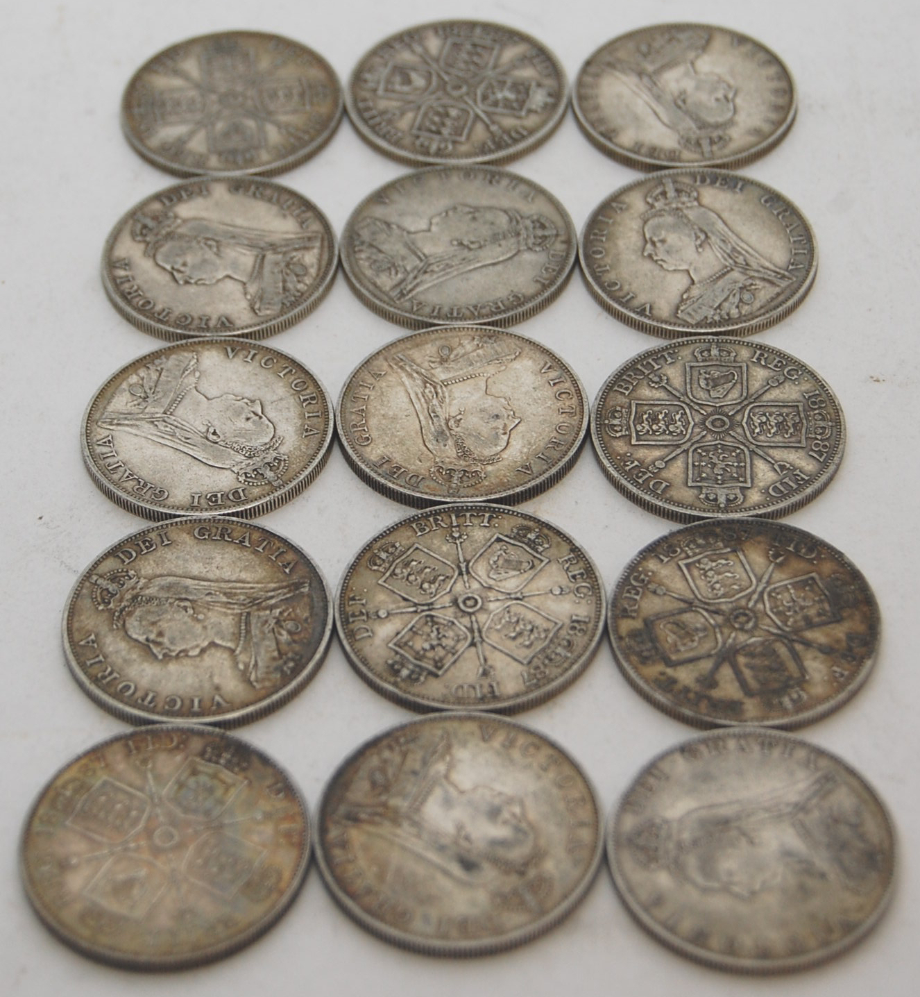 to include: florin, double florins and crowns; together with other silver and sundry coins (qty)