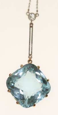 An aquamarine and diamond pendant necklace
