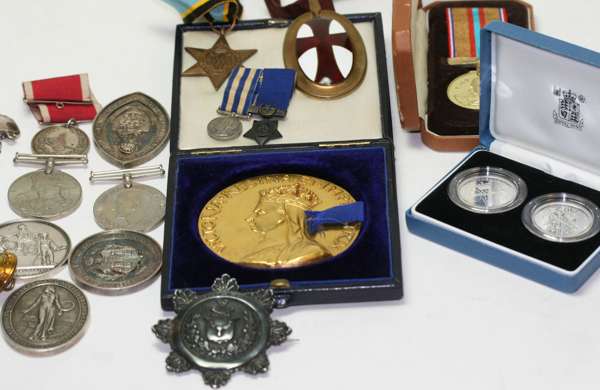 A mixed group of Victorian, WWI, WWII other medals and coins