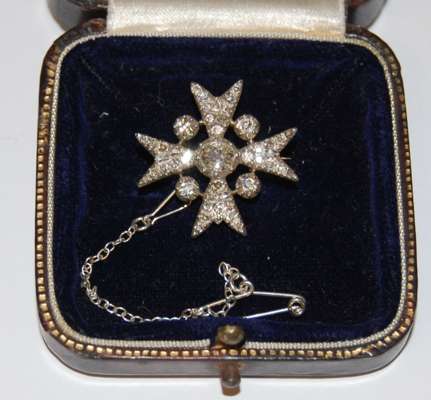 An Edwardian gold, pearl and diamond set star shaped brooch