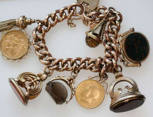 A large gold charm bracelet