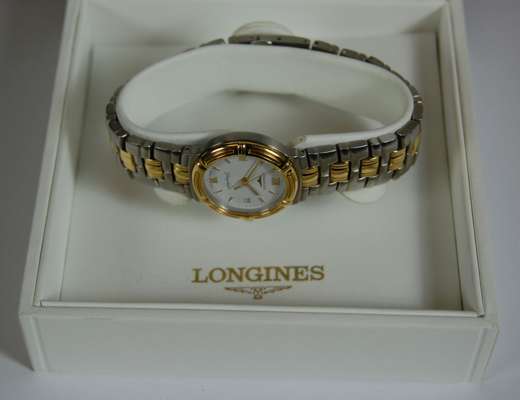 LONGINES - a modern lady's stainless steel and gilt Flagship wrist watch