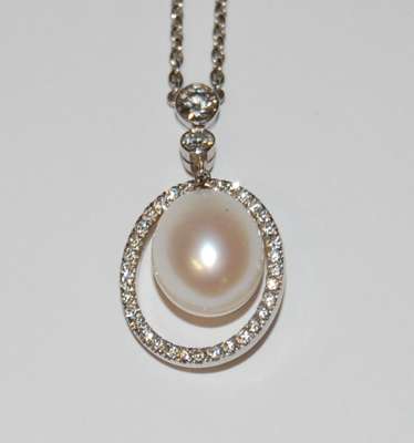 An 18ct white gold mounted cultured pearl and diamond set ring