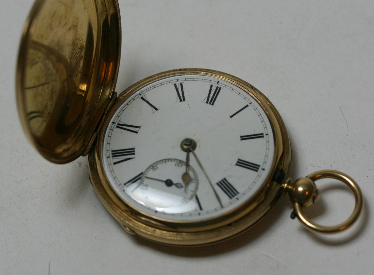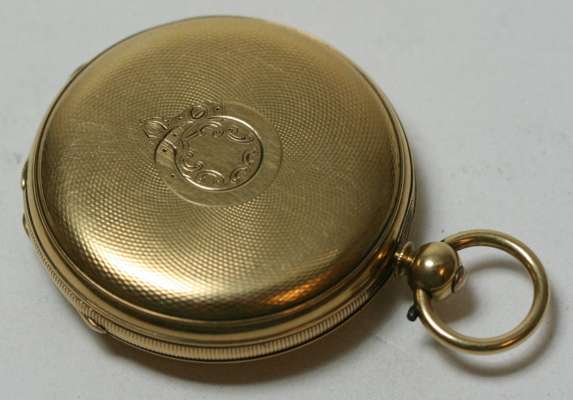 the movement inscribed J Thimms London, white dial with subsidiary seconds dial, full hunting cases with engine turned decoration, keyless wind