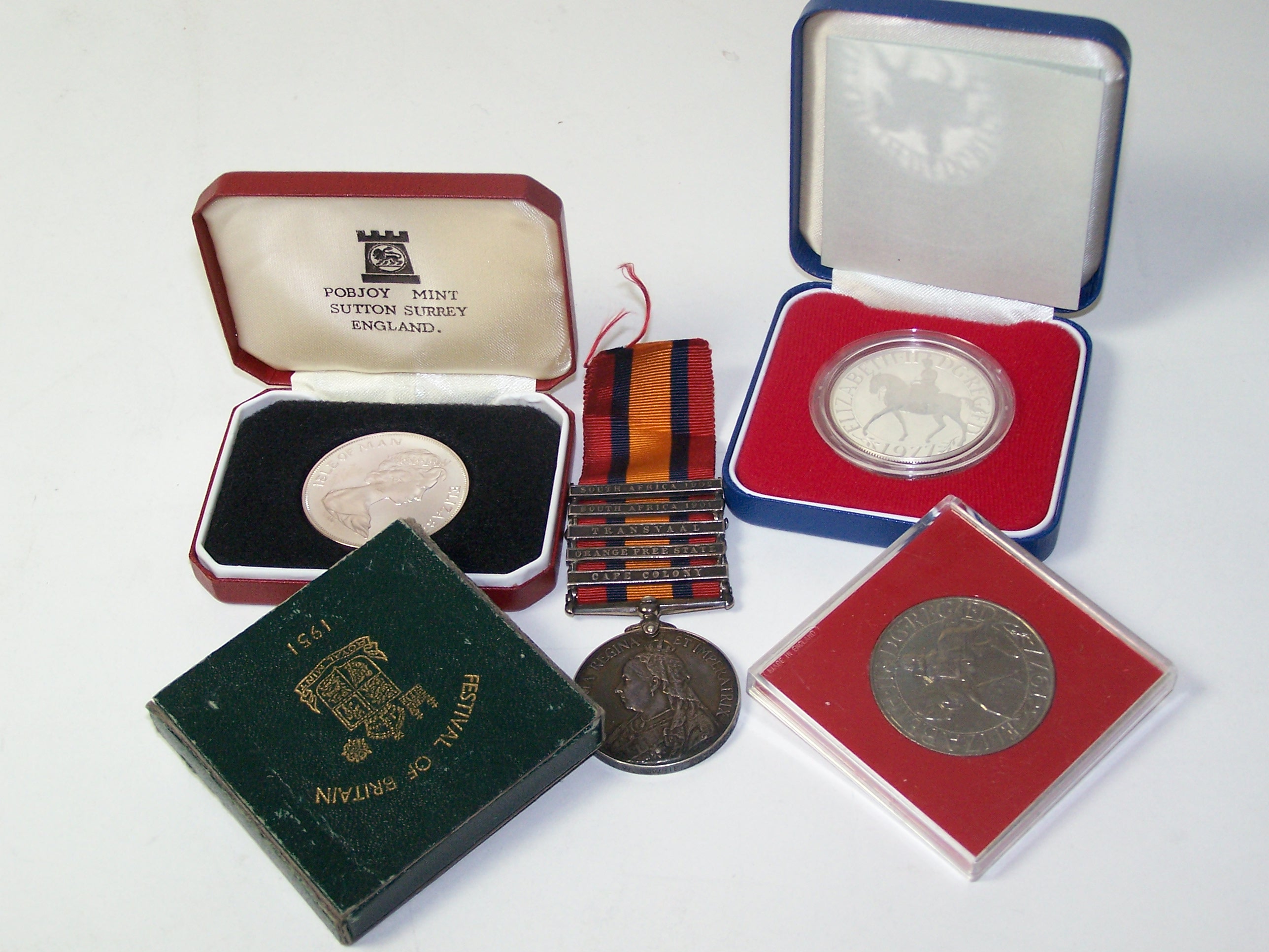 A five bar Queens South Africa medal