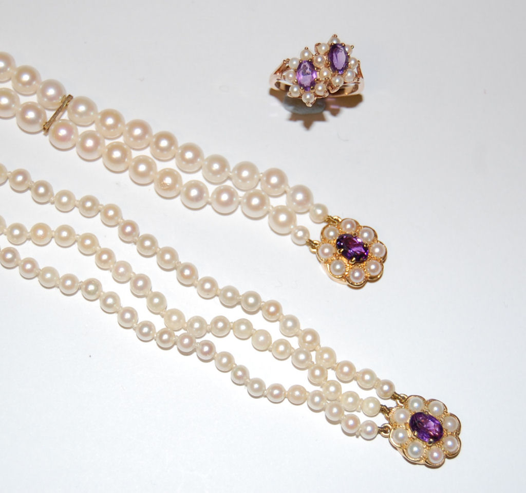 An amethyst and cultured pearl set suite