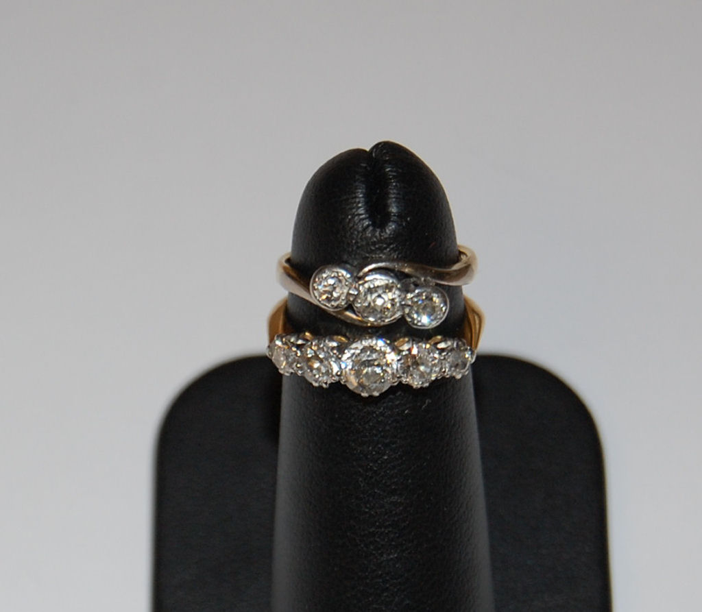 of graduated form, claw set in platinum and 18ct gold shank, together with a small illusion set three stone diamond ring