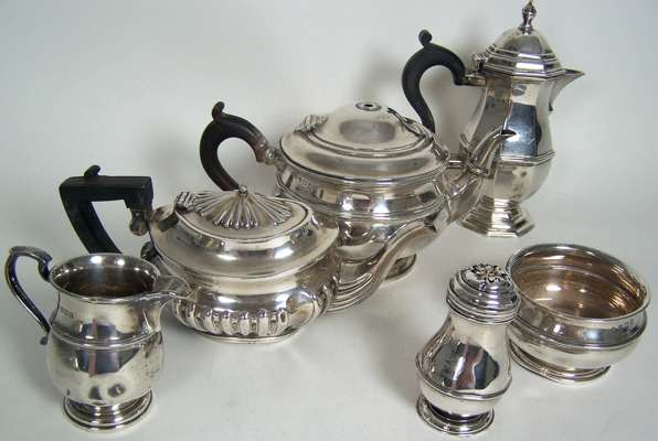 A matched suite of Old English pattern table silver