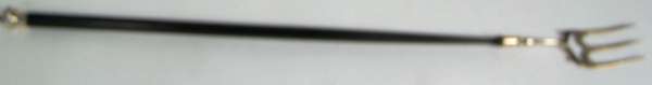 London 1900, the three pronged fork of simple form with socket mount to flared rosewood handle and silver final with loop