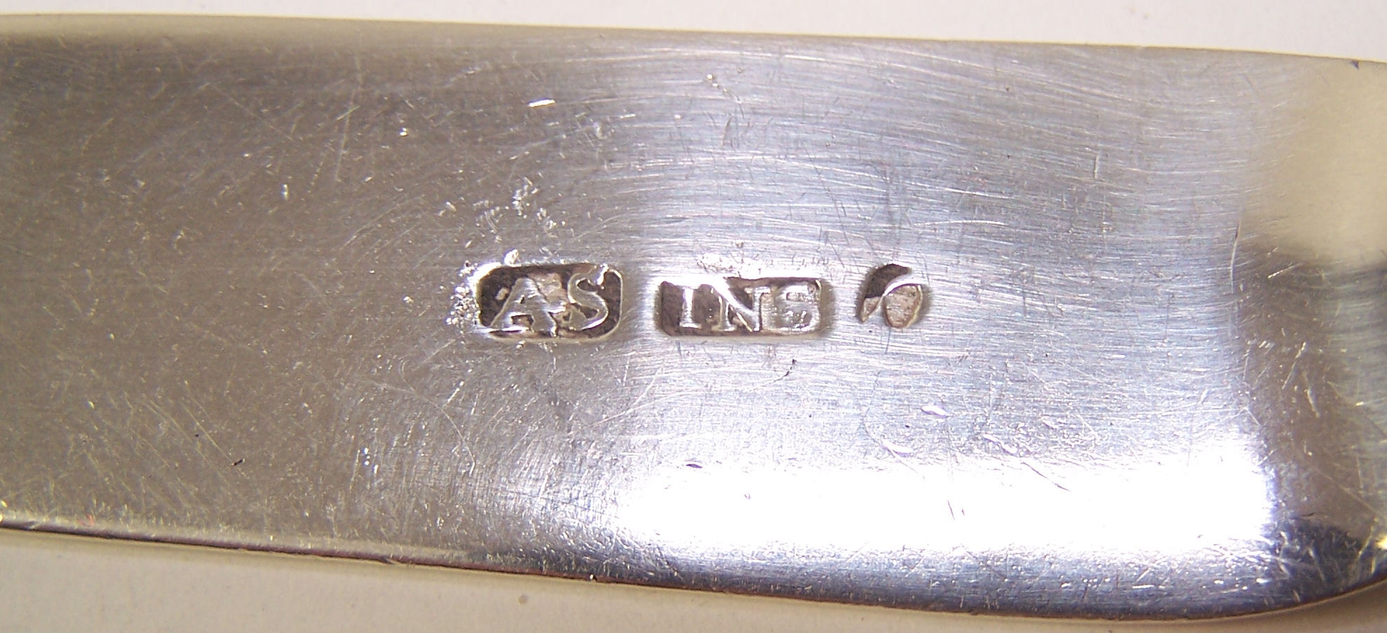 by Alexander Stewart, marked AS, INS, C, of Fiddle pattern with shaped and simply pierced blade