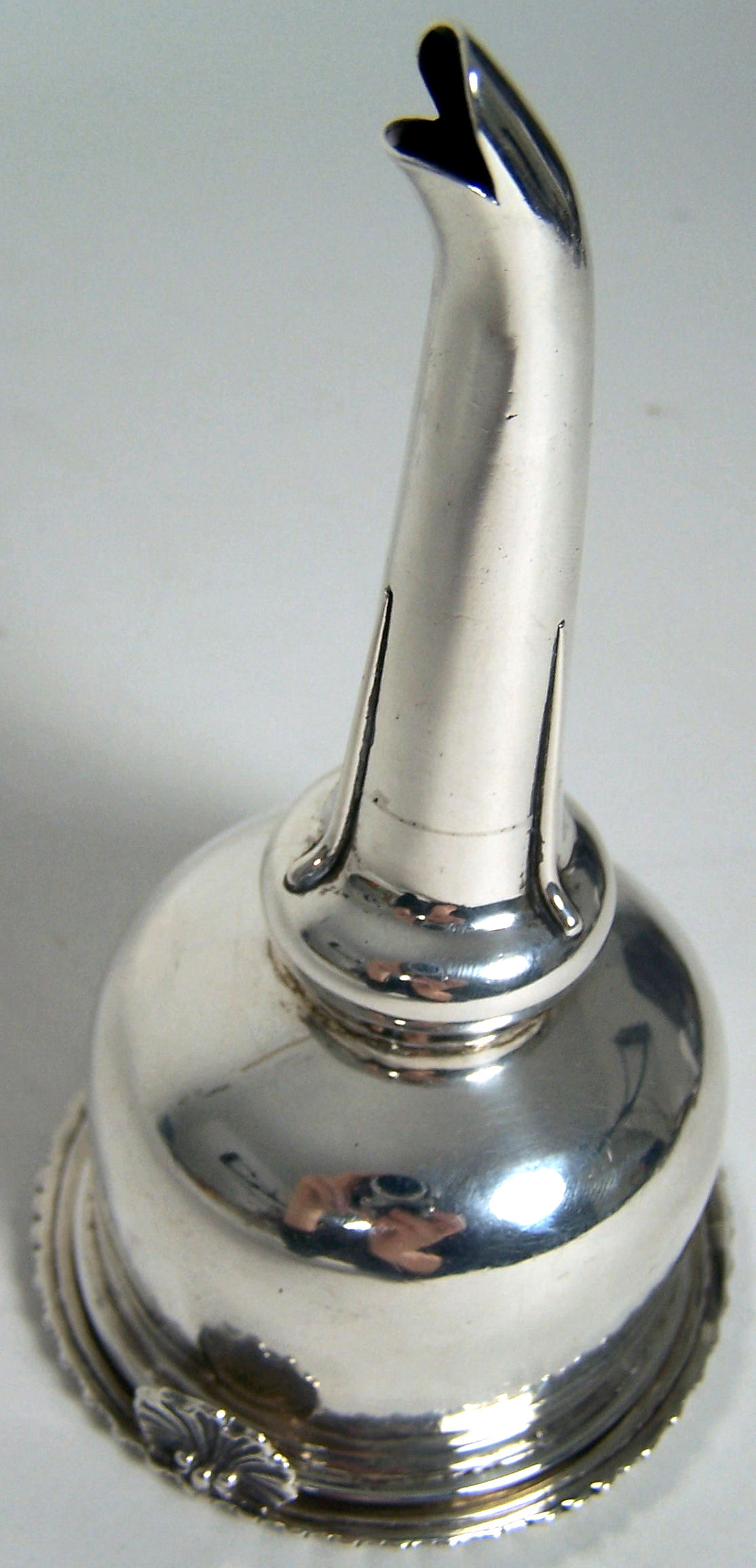 J McKay, Edinburgh 1819, the simple bowl with knopped and tapered curved spout, the pull out strainer with gadrooned rim and shell clip