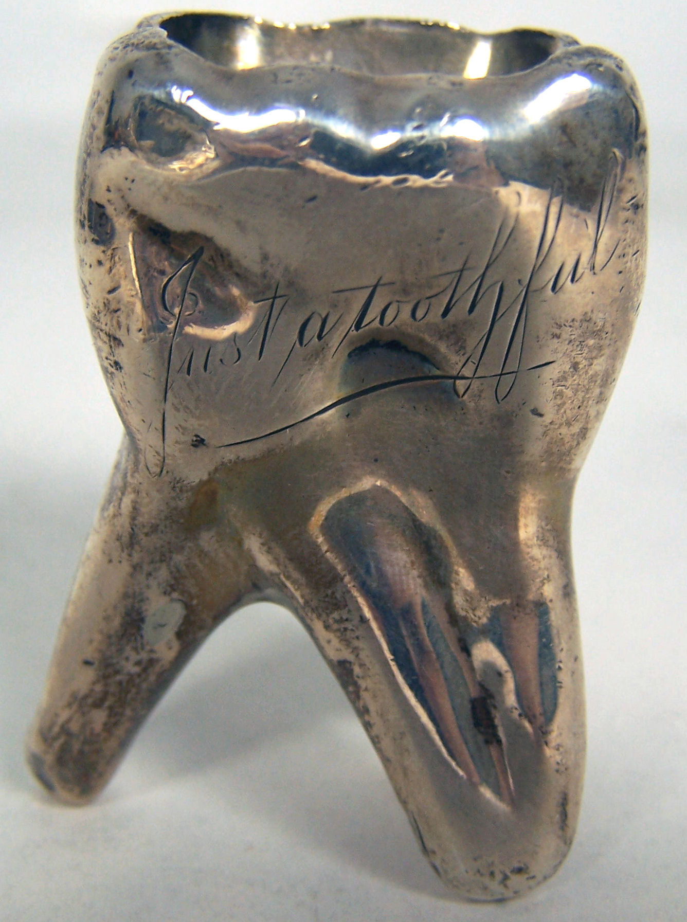 Henry William Dee, London 1876, modelled as a tooth, engraved to the side 'Just a toothful'