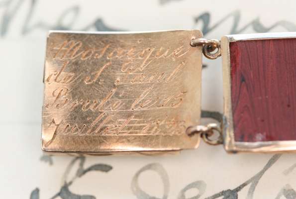 circa 1823, composed of ten simple hardstone panels, with tapering top, plain rubover setting, engraved to the rear of the clasp 'Mosaique de S Paul Brule, le 15 Juillet 1823'