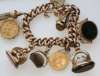 the large curb links with padlock clasp and nine charms including two sovereigns, two swivel seals, two other intaglio seals etc.