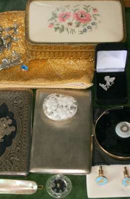 a 9ct gold cased wristwatch by Jaeger le Coultre, with flexible bracelet; a hollow 9k bracelet with ribbed links; gold and amethyst pendant and chain; other chains; pendants; cultured and other pearl necklaces; silver Scottish brooch; modern Mexican silver brooches; wedding band and other rings; cigarette case; small silver trinket box; silver cased fob watch; compact; five Bank of England £1 notes (Peppiatt) and four 10/- notes (Qty)