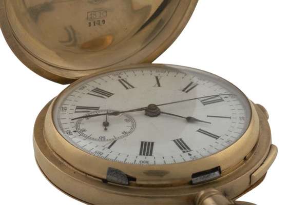 An 18K gold cased keyless wind, quarter repeater pocket stop watch
