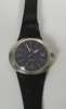 with blue dial with baton numerals and date aperture, on original black leather strap