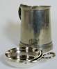 probably Strasbourg 1780's, of conventional form with loop handle to shallow bowl and engraved inscription to rim; together with a pewter tankard with glass base (2)