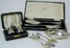 to include a set of twelve teaspoons and tongs; another set similar in hourglass variant; a set of six coffee spoons and tongs; together with six King's pattern Victorian teaspoons, a pierced bon bon dish, a cased cruet and plated salad fork and spoon (qty)