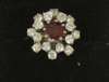the oval ruby within a double border of circular brilliant cut diamonds (16), plain shank