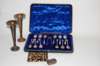 to include a tortoiseshell calling card case; mother of pearl trinket box; cased set of twelve teaspoon with matched tongs; spill vases etc (qty)