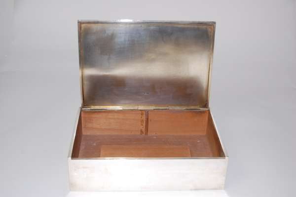 Stokes and Ireland, Chester 1918, of rectangular form engraved inscription referring to signing of Peace Treaty, "A memento of the signing of the Treaty of Peace on 28th June 1919 from FFAGH and JWM"