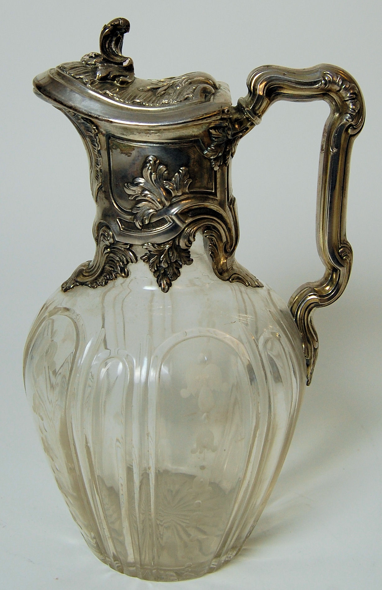 Sheffield 1911, the fluted panelled body with etched decoration, with simple scroll handled and slightly domed hinged cover, the collar mount with embossed foliate and linear borders