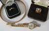 decorated with pierced and engraved leaves, together with a 9ct gold lady's wrist watch and bracelet; a small opal and gem set ring; a modern pearl and turquoise set dress ring