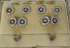 stamped 18ct, comprising pair of cufflinks, four buttons and two studs, contained in a fitted Asprey's case, centrally set with a collet set round brilliant cut diamond with black onyx border with mother of pearl ground in a reeded white gold rim,