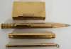 Samson Morden & Company, of octagonal section with engine decoration; together with 9ct gold swizel stick of conventional form and a 9ct gold cigarette lighter with engine decoration, also to include a gilt brass propelling pencil (4)