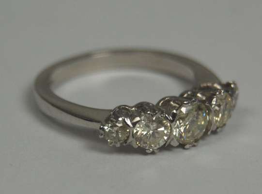 A platinum mounted five-stone diamond ring
