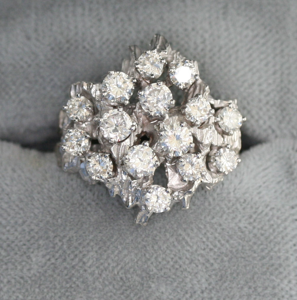 cast in 18ct white gold as an abstract naturalistic form, claw set with fifteen circular brilliant cut diamonds