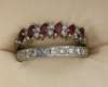 set bin platinum together with a ruby and diamond half eternity ring set in 18ct white gold