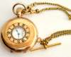 together with a lady's Omega wrist watch; a rolled gold cased pocket watch by Elgin; a gold fine link bracelet; and a white gold neck chain