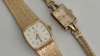the rounded rectangular dial with plain baton numerals, textured milanese style bracelet; together with an art deco period lady's 9ct gold wrist watch with double flexible gold bracelet, both watches engraved to the cases (2)