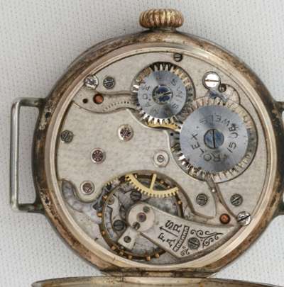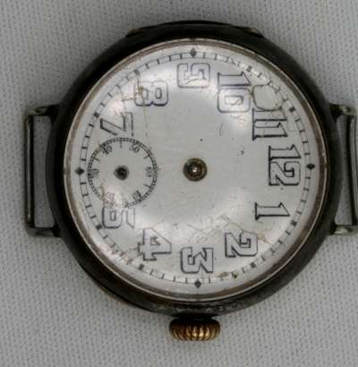 with import marks for London 1914-15, the white circular dial with Arabic numerals and subsidiary seconds dial