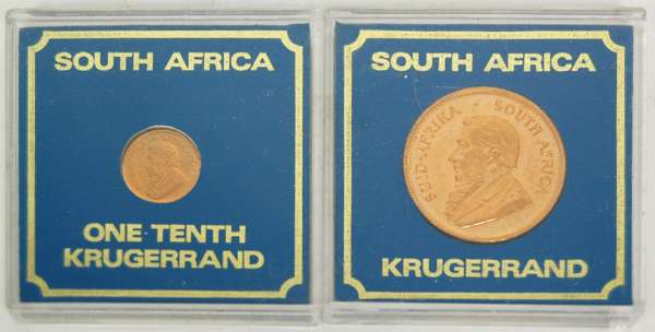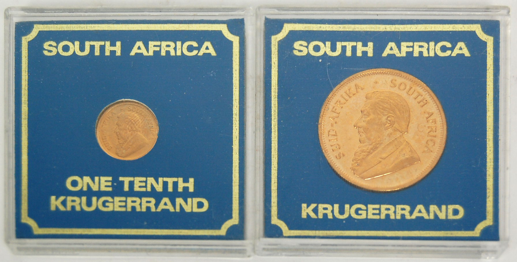 EF or better, in plastic case; together with 1982 tenth Krugerrand, also in plastic case (2)