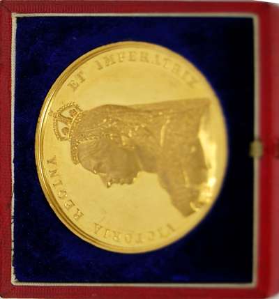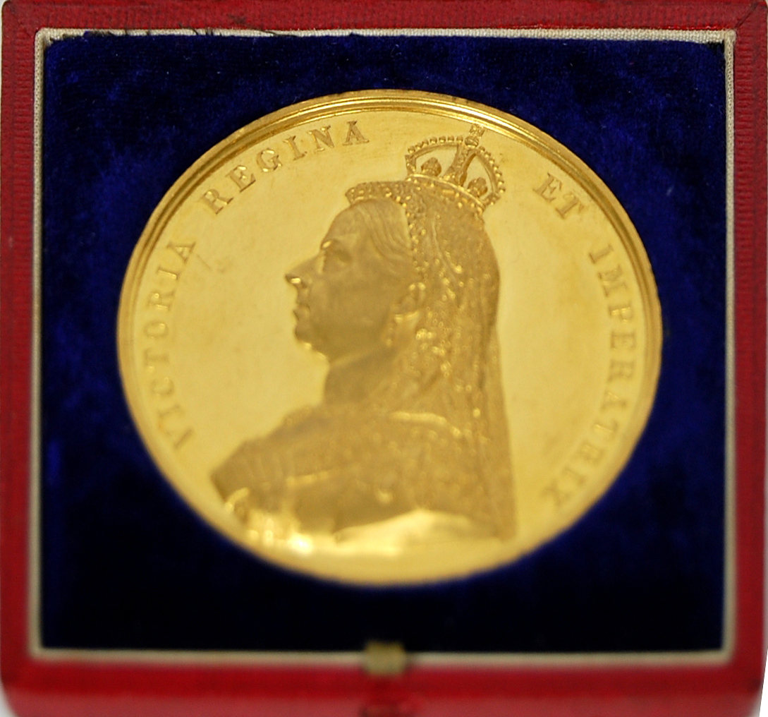 An 1887 Golden Jubilee cased gold medallion